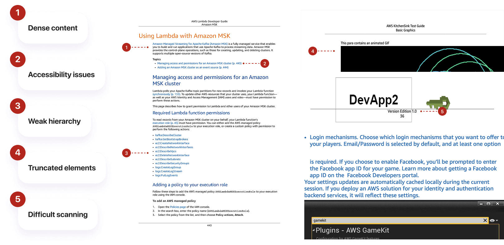 Audit of the existing AWS documentation PDF — 5 systemic failures across every document.