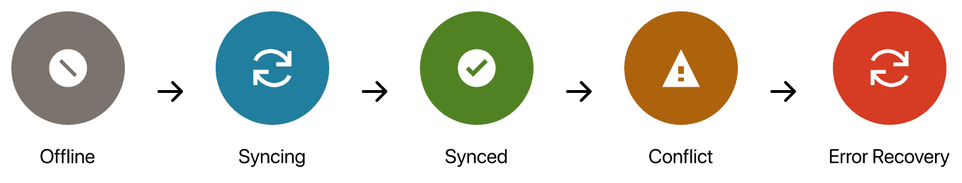 Users couldn't distinguish Idle from Synced — or act in Conflict or Error Recovery.